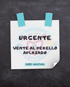 Ante las previsiones meteorológicas adversas para el próximo sábado día 7, se ha decido aplazar el Día de las Familias “VENTE AL PERELLÓ”. Próximamente comunicaremos la nueva fecha. Lamentamos las...