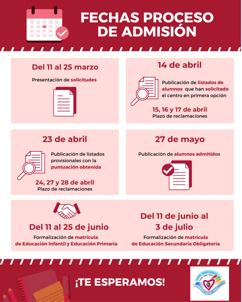 Nos complace informaros de que el proceso de admisión comenzará este miércoles 11 de marzo y estará abierto hasta el 25 de marzo, ambos inclusive.
