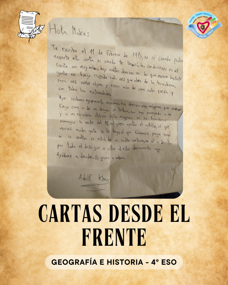 A través de esta actividad, los estudiantes se han puesto en la piel de los soldados de la Primera Guerra Mundial, imaginando su vida en las trincheras y escribiendo cartas a sus seres queridos en las que relatan el miedo, la esperanza, la dureza del día a día y el impacto humano del conflicto.