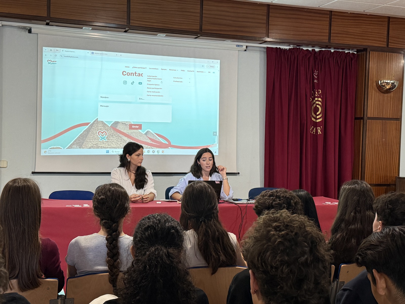 Hemos tenido el placer de contar en nuestro colegio con el equipo de Madrid Xplora junto con Eric Frattini. En una charla muy motivadora han presentando a nuestros alumnos de Bachillerato el Proyecto Madrid Xplora donde 20 alumnos seleccionados de toda la Comunidad de Madrid disfrutarán de un viaje inolvidable donde la cultura, la aventura y la solidaridad irán de la mano.