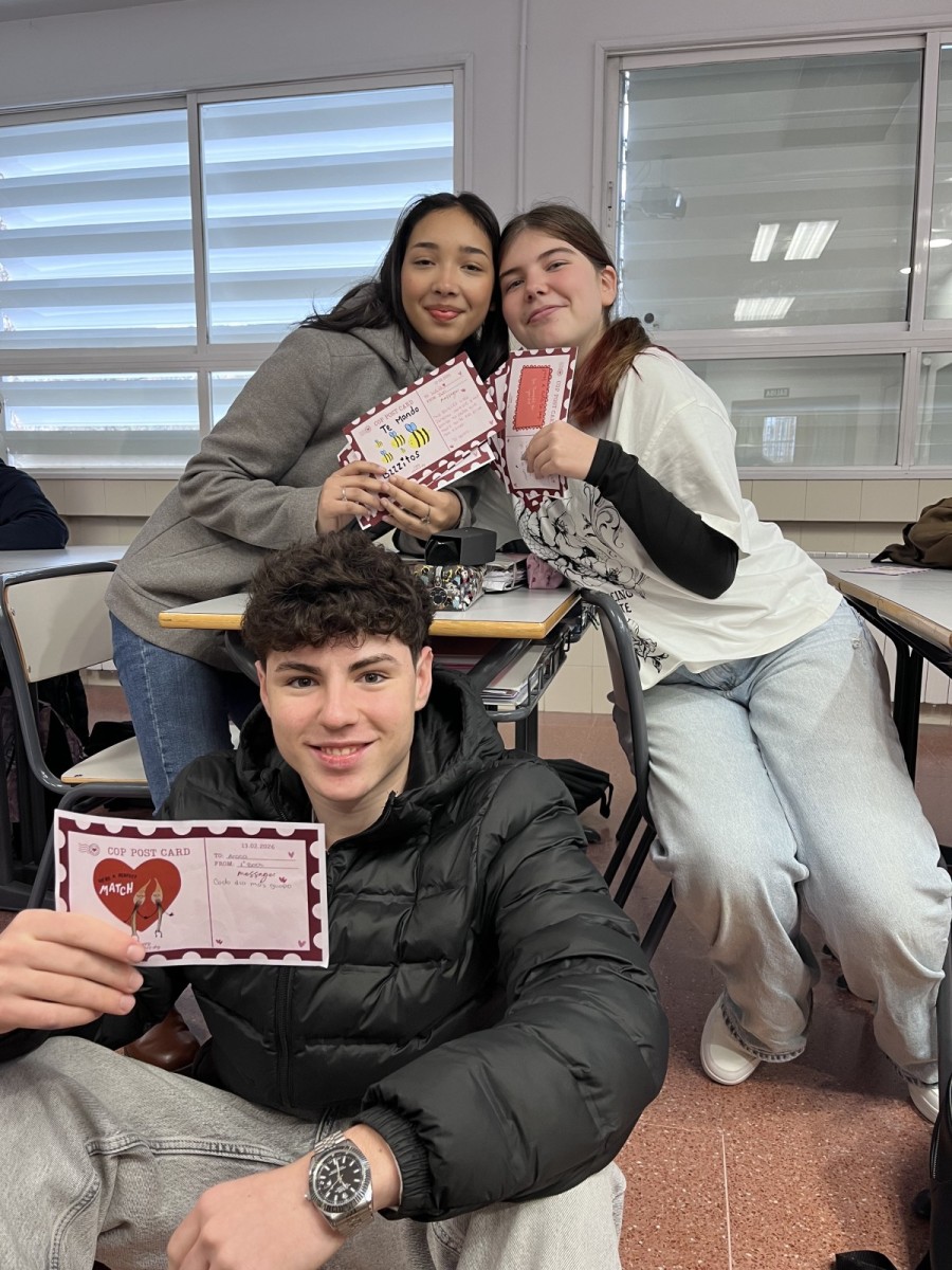 ¡Valentine’s Day in Secondary & Bachillerato! In our English classes, students celebrated by sending Valentines around the school to raise money for our class apadrinamientos. Thanks to their generosity, we raised 359 €!. They also got creative with our language assistants, writing Haikus, Acrostic Poems, and of course…»Roses are red, violets are blue…” .Spreading love while learning English!