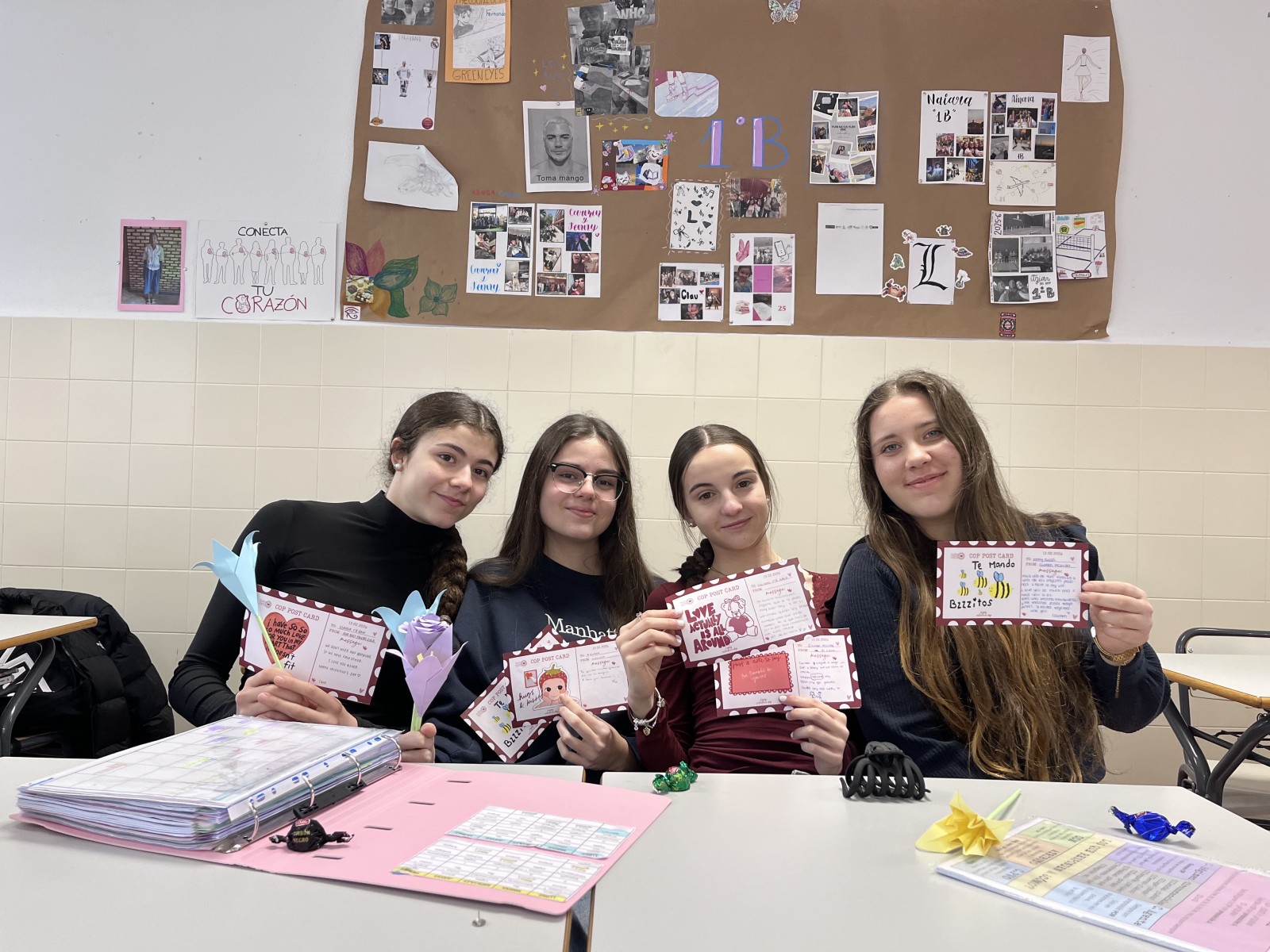 ¡Valentine’s Day in Secondary & Bachillerato! In our English classes, students celebrated by sending Valentines around the school to raise money for our class apadrinamientos. Thanks to their generosity, we raised 359 €!. They also got creative with our language assistants, writing Haikus, Acrostic Poems, and of course…»Roses are red, violets are blue…” .Spreading love while learning English!